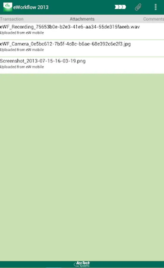 AccTech eWorkflow Mobile is an extension of the eWorkflow 2013 Business Process Management solution. The AccTech eWorkflow 2013 app delivers the powerful features of the desktop version straight to you Android device. The user friendly and Android native interface leads to quick user adoption. With this app, you no longer need to be in front of your computer in order to initiate or take action on workflow processes around you ERP.