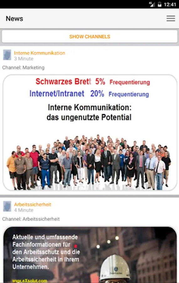 TeamBroadcaster allows you to selectively distribute multimedial content to defined user groups or end devices such as large screens in your company.