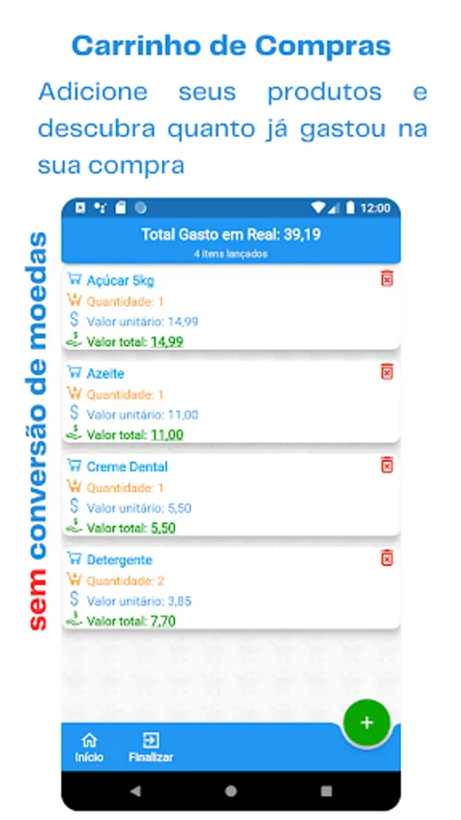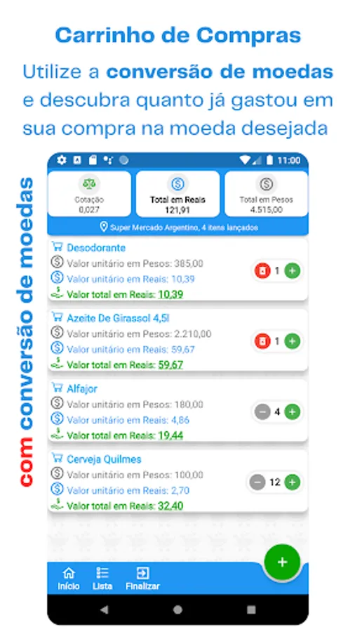 With our app, create your shopping cart, add your products and find out how much you spent before going to the checkout.