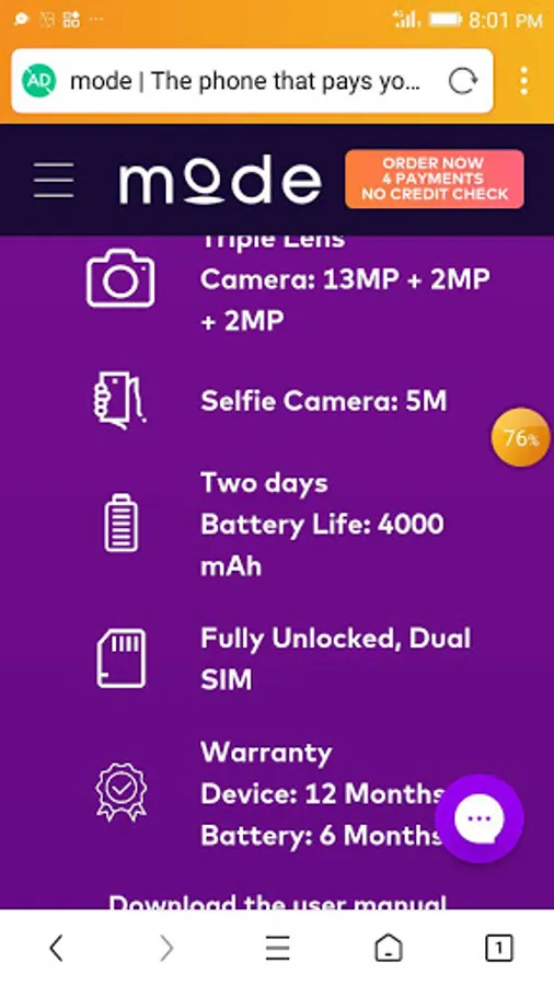 A mode Phone,helps you earn money as you,surf,read news,listen to music charging and in lock mode.