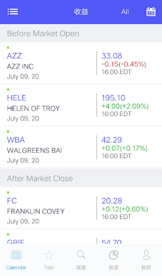 Easily add earnings events to your device's calendar with preset alarms. When the event date approaches, you will automatically get reminders & alarms.