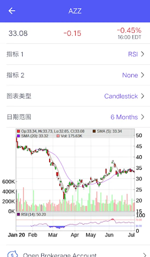 Enter a stock symbol in "Research" tab and view stock quotes and charts with multiple technical indicators, chart types, & date ranges. Customize the parameters and enlarge the chart to full-screen for detailed study. Check earnings history, read news, view insider tradings, write your notes, and see shared notes from others.