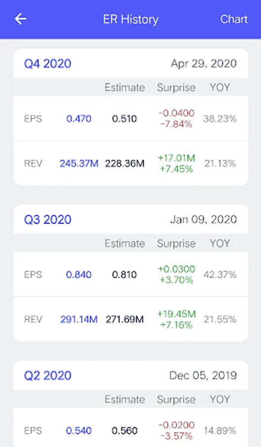 Earnings season is here! The newly designed earnings calendar and earnings history let you conveniently view upcoming earnings events of a single date or date range, detailed historical earnings data like revenue, EPS, estimate, surprise, year-over-year comparison, and revenue / EPS chart. You can also create multiple watchlists, add stocks, view advanced quotes, and check next earnings dates for all stocks in a watchlist with one tap.