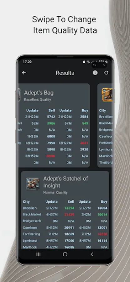 Albion Online - Market Data is a companion app to display market data helping the player make decision for best profit trading for the official game Albion Online.