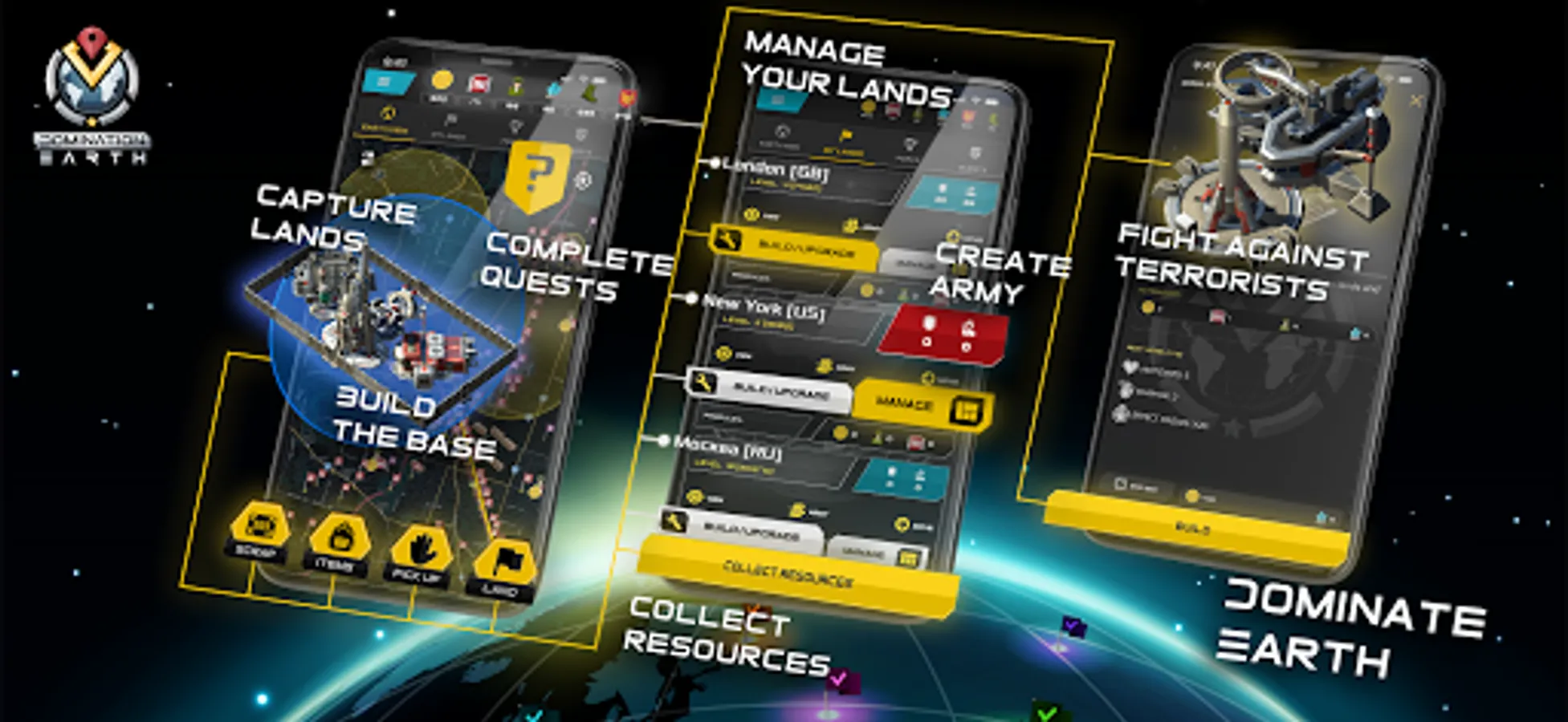 Augmented Reality strategy game "Domination: Earth" operates in the real world around you - military style! Check in wherever you go using your phone or tablet to capture places and pieces of land, expanding your global empire - like Geocaching on steroids!