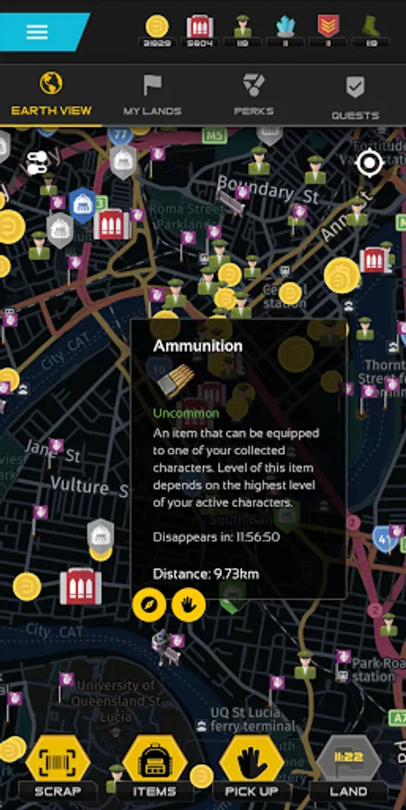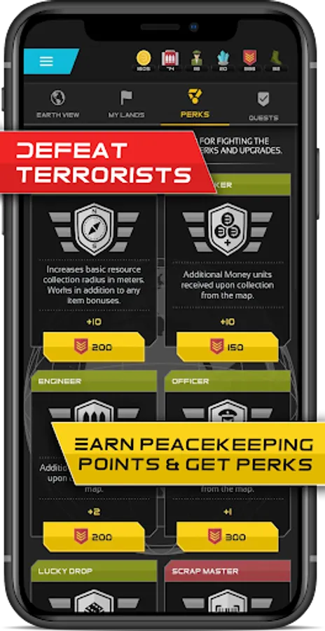Construction resources will pop up all over the globe, so in the process of their collection you can explore places you've never seen before. Why not go hiking or cycling? Explore and adventure to secure valuable resources! Traveling to another country? Don't forget to check in five times in any spot to establish a new base of operations. Once you've collected enough resources you can send your armies to the overseas base in order to advance your influence remotely, even after you've left!