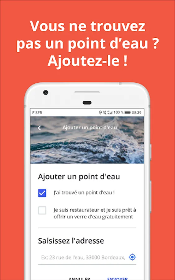 • talk about FreeTaps to shops, restaurants close to you: if they decide to provide water to their customers for free, we will source them in the basic FreeTaps and send them stickers to stick on their window (nice not?) - tell them to report to the application, we will contact them!