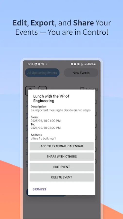 Save your time and enjoy the ease of adding events to your calendar like never before, don't let events miss you anymore!