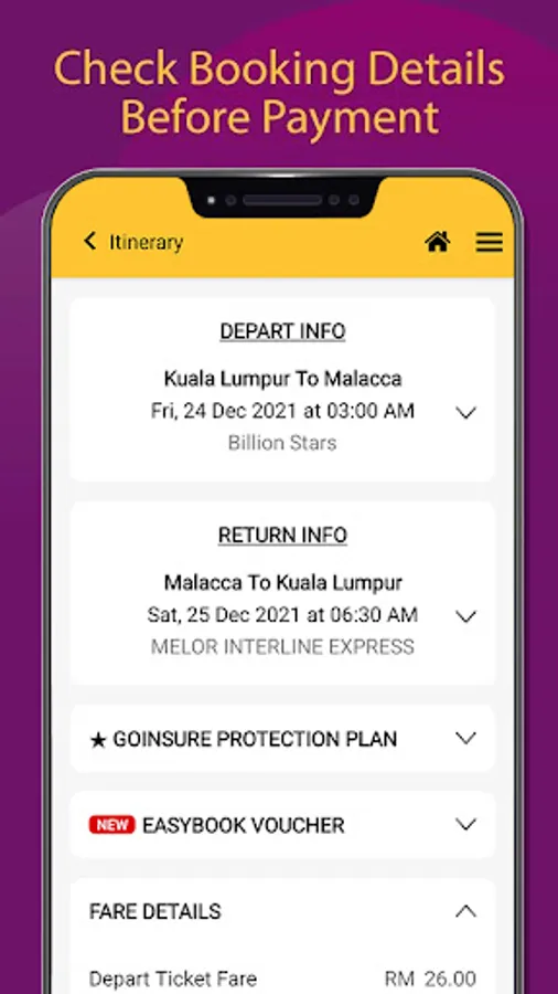All types of booking can be purchased online in just a few simple steps through Easybook app. We offer Zero admin fees, loyalty points and various discounts available throughout the year.
