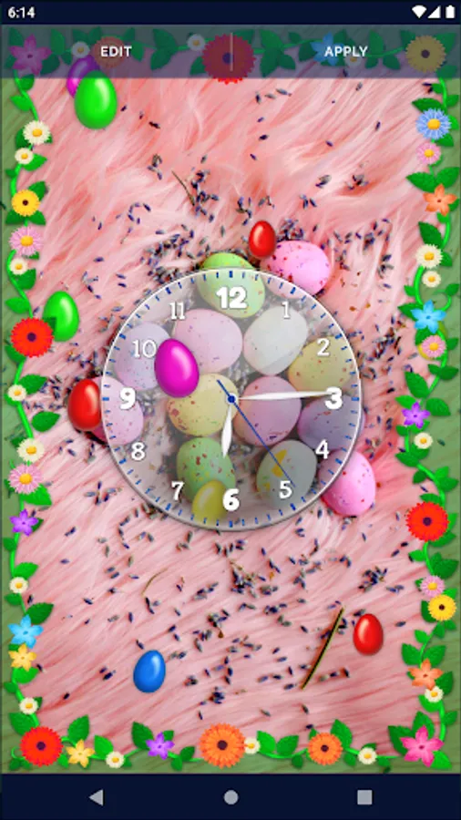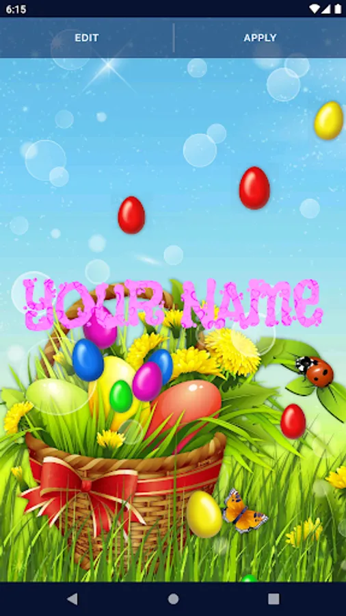 Easter Eggs Live Wallpaper 🥚 4K Wallpapers Themes has multiple moving wallpapers with colorful basket and Easter images, Spring Holiday backgrounds, colored eggs HD wallpaper, multiple customize options like background changer, frames, animated Easter eggs, magic touch, analog clock, emoji, your name and more, that work on the lock screen and they are all FREE!