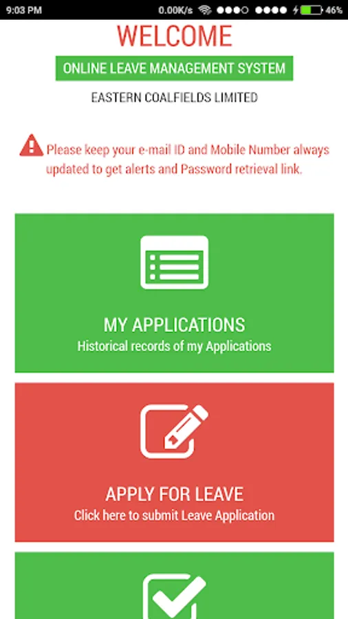 Online Leave Management System for employees of Eastern Coalfields Limited, a Subsidiary of Coal India Limited.