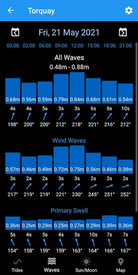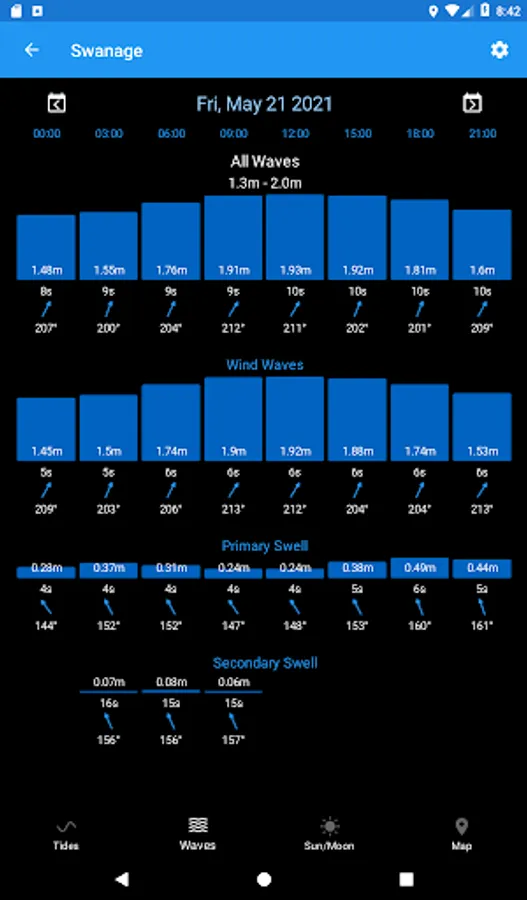 - Works completely offline (except for maps, sea temperature, wave forecasts).