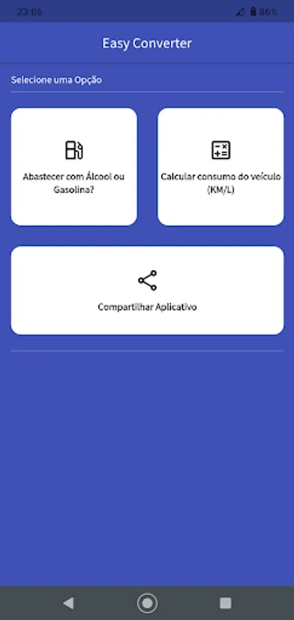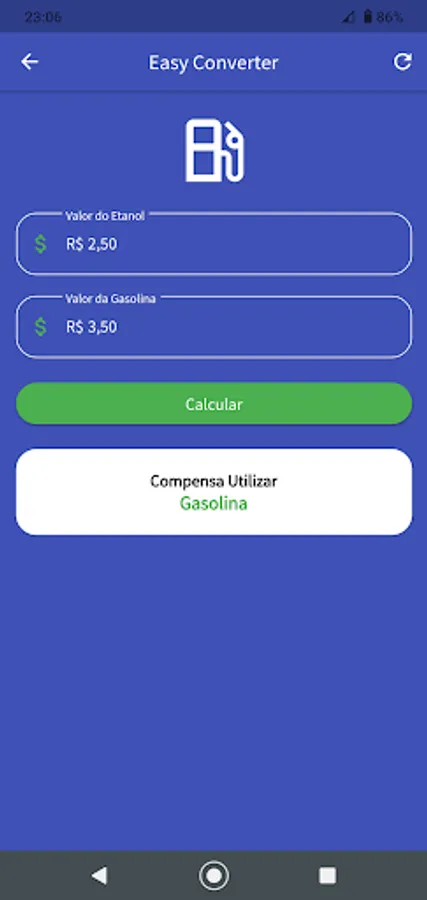 When stopping your vehicle at the gas station, just open this application, enter the price of gasoline and the price of alcohol and click on the Calculate button, and then you will be informed which fuel is best to use.