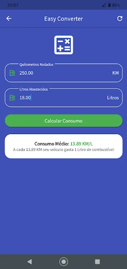 It is now also possible to calculate what fuel consumption per liter (KM/L) your vehicle makes. Just inform how many kilometers traveled and how many liters were filled for the application to calculate what was the consumption.