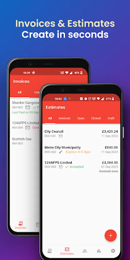 ✔ Create invoices & estimates, any where & any time