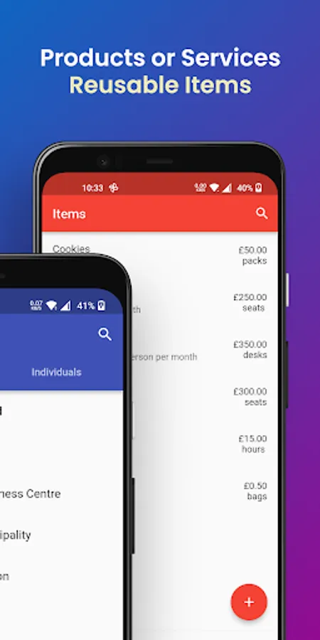 ✔ Manage reusable items, both products & services.