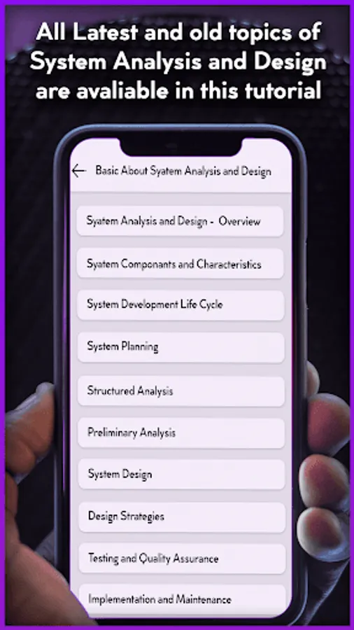 System Analysis and Design - Home, System Analysis & Design - Overview, System Development Life Cycle, System Planning, Structured Analysis, System Design, Design Strategies, Input / Output & Forms Design, Testing and Quality Assurance, Implementation & Maintenance, System Security and Audit, Object-Oriented Approach.