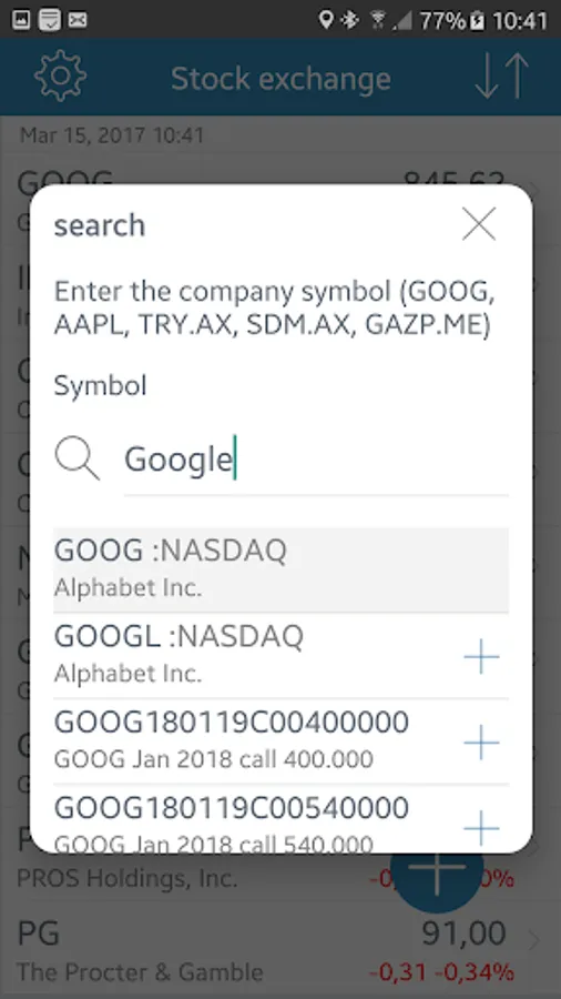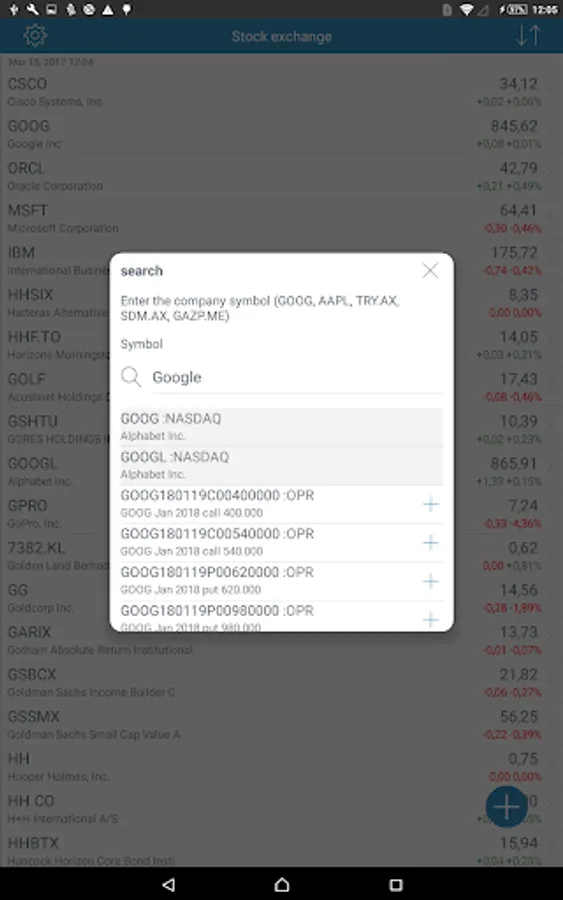 • user-friendly search system and addition of companies using their names or symbols in the stock market;