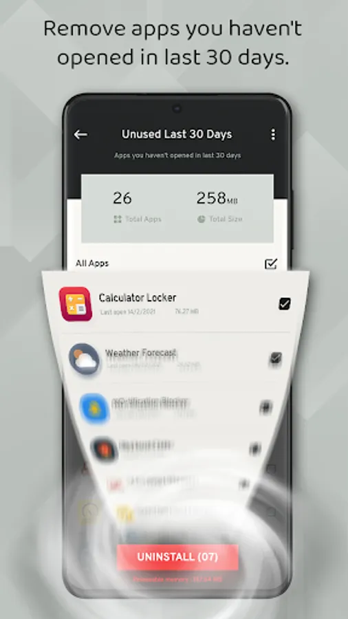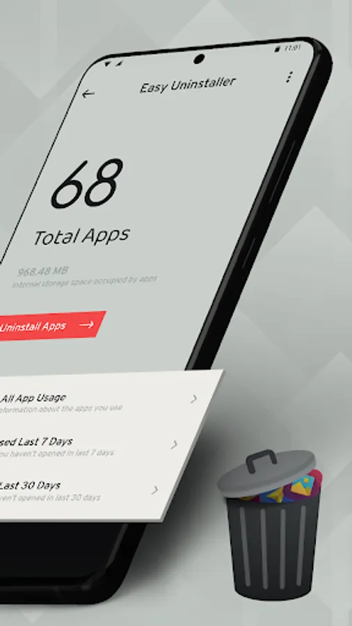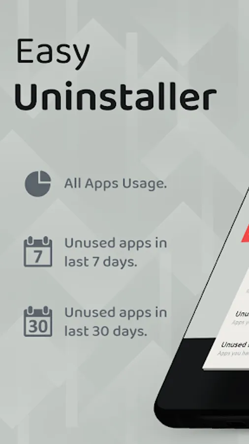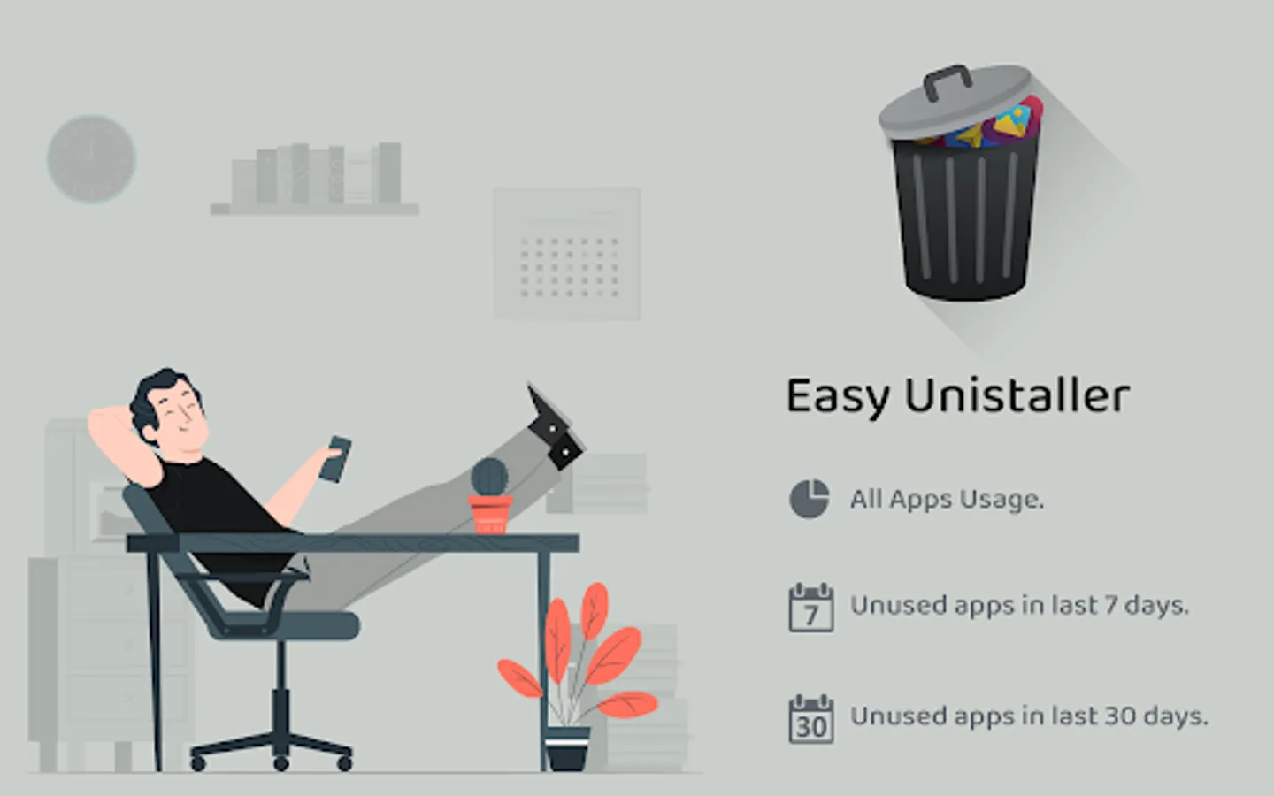 Easy Uninstaller or Multi Apps Uninstaller is a handy uninstall tool that will help you to find and remove apps from your device. It Uninstall multiple apps from your device simply and quickly from the list of user installed applications. Easy Uninstaller app also show you the apps list which are not being used for Last 7 day & Last 30 days.