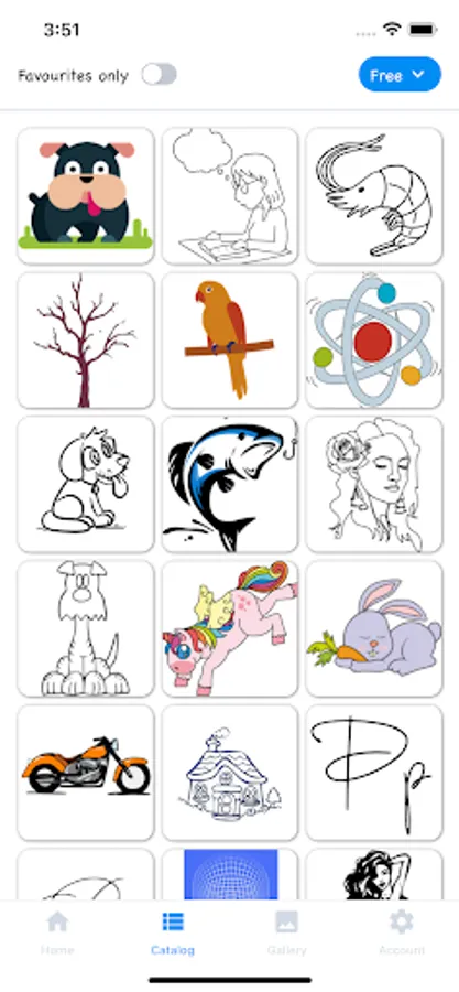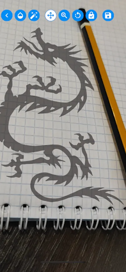 To start drawing, point your smartphone camera at a piece of paper. Choose a picture you like from the application catalog or your own phone gallery, it will be superimposed on top of the camera image. Set the necessary transparency and get creative!