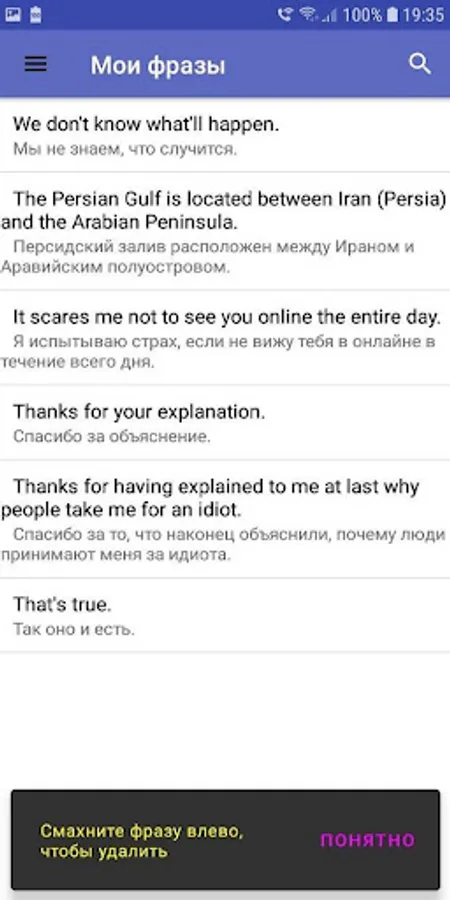 The EduCat app should help you to become more confident and skilled in the Portuguese language. Just read and listen to the Portuguese phrases every day and it will help you to understand Portuguese speech and learn Portuguese language patterns.