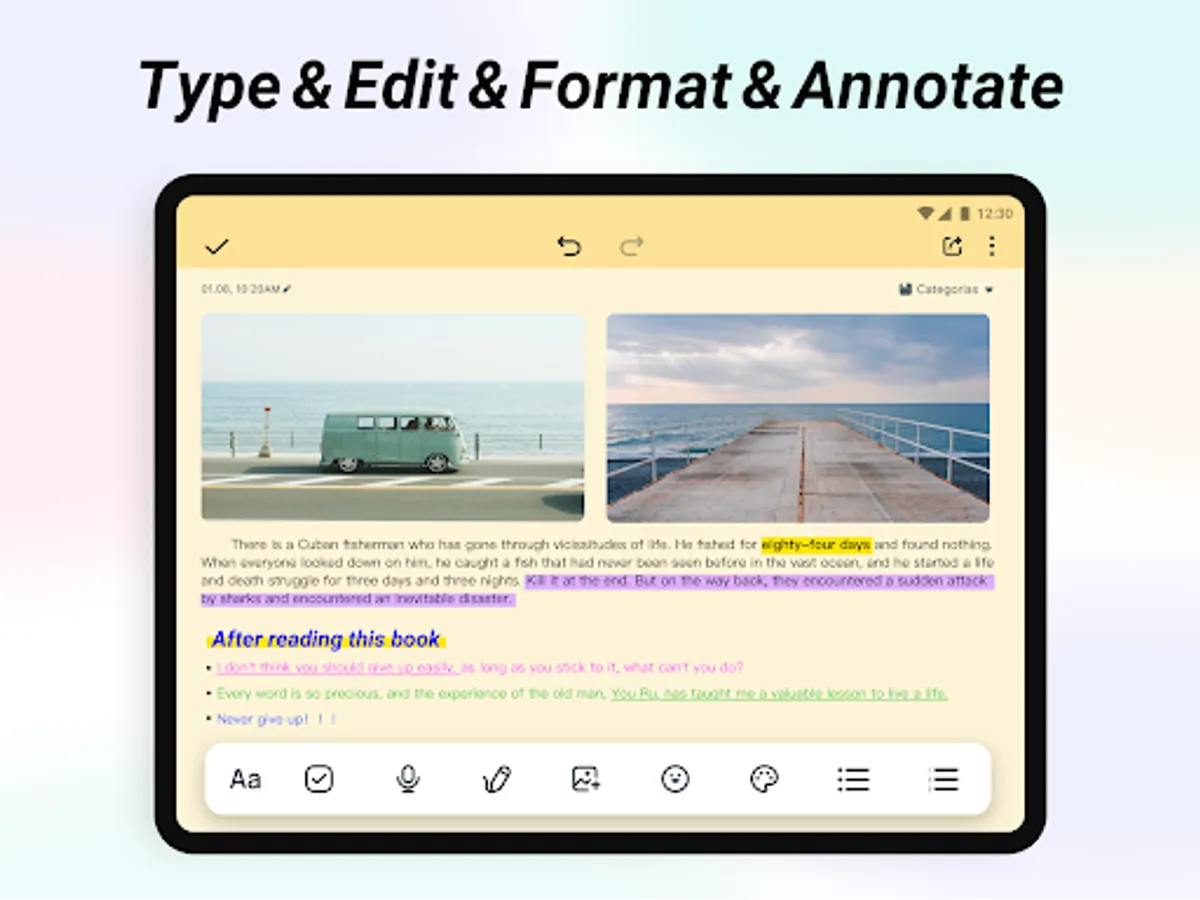 β Easy Notes - Good Notes, Notepad, Notebook, Free Notes Appβ is an easy-to-use notepad free for note-taking app. With this easy notebook and notepad app, take quick notes with colorful backgrounds and checklists to organize notes and tasks easily. Use this note taker and aesthetic notes to add photos or audio to your notes. Easy Notes is a good notes taking app and notebook for keeping notes and organizing tasks.