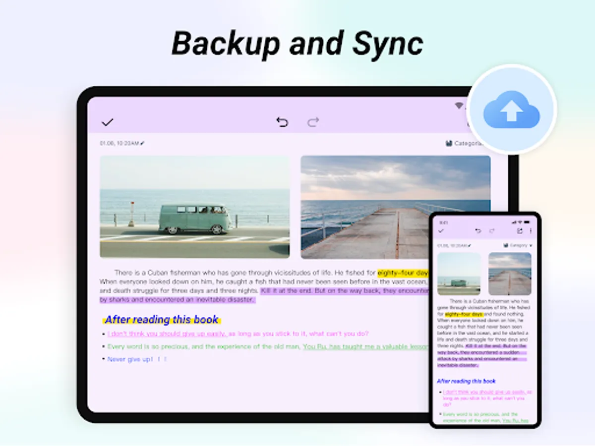 This awesome notes writer sync note between tablet and phone from the Google cloud. Never worry about losing note pad. Easy to share notes or import notes into the notebook.