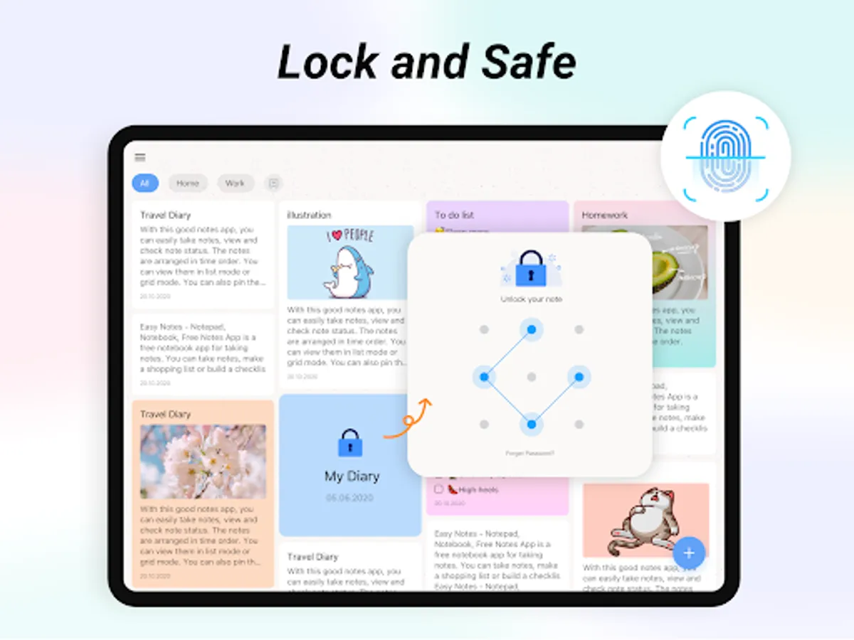 Notepad Lock helps keep notes private with locks. Note writer with locker protect one note pad or the entire notes category to keep the notebook safe.