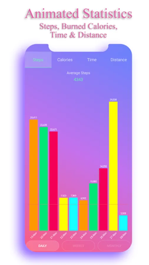 Pedometer App to count your steps with accurate burned calorie calculation, an integrated water tracker, weight loss statistics and motivational badges.
