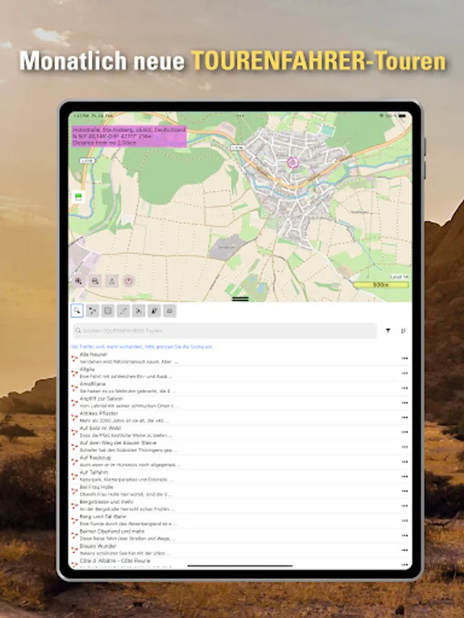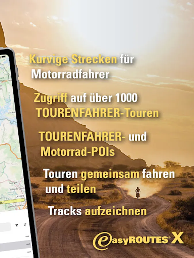 With easyROUTES X Mobile you have full access to the entire TOURENFAHRER tour database. Be inspired by more than 1000 motorcycle tours, adapt them to your wishes in just a few clicks or follow in the footsteps of our editors. The stock of motorcycle tours selected for you and checked by the editors is growing every month.