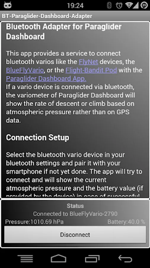 Connects the Paraglider Dashboard with external Varios via Bluetooth.