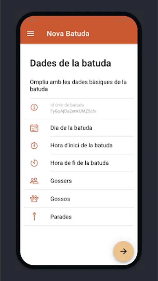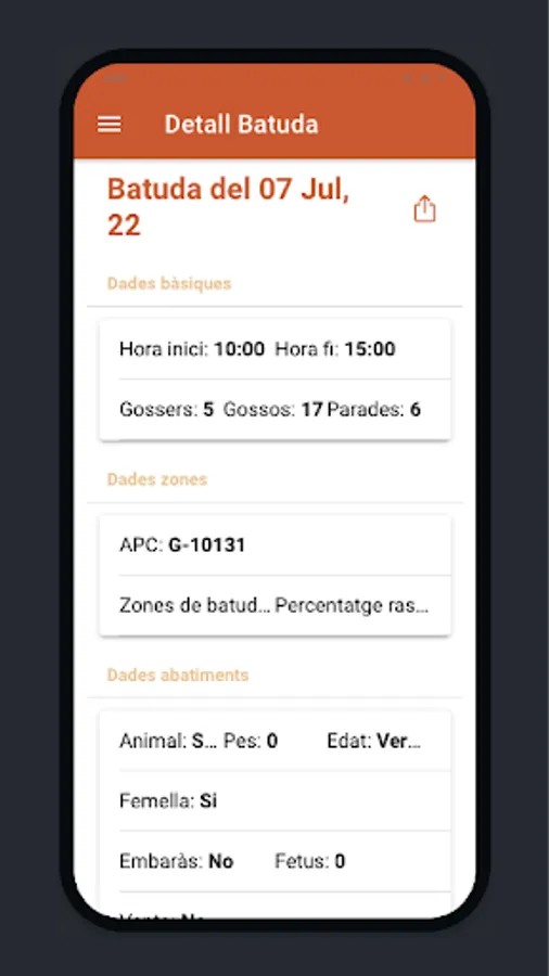 App that allows the management of information on big game raids. This app is designed to facilitate the transmission of information from hunting groups to the Federation, to have an accurate and up-to-date census of hunting activities in Catalonia.