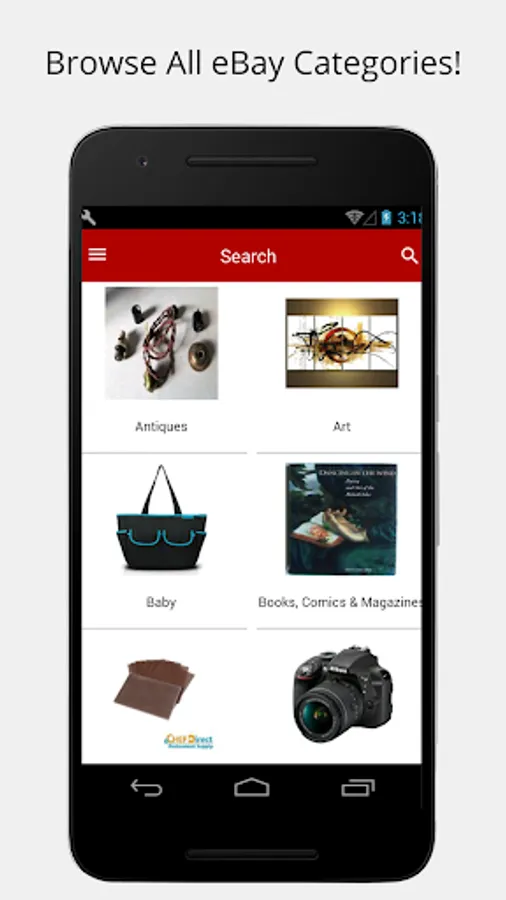 • categories - browse ebay categories (the images are real items from the category) and choose the one you would like to search in!