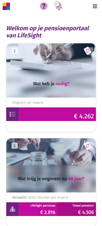 LifeSight is a modern and independent pension provider that strives for the best outcomes for its clients. We do this by searching and choosing the best parties in the field of investment and insurance and bundling them in a solution for you. We provide you with a simple insight into your personal pension situation and the possibilities to adjust matters to your wishes. Do you want even simpler and faster insight into your pension? Then download the LifeSight pension app.