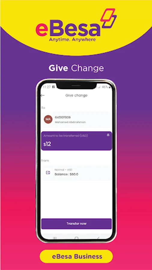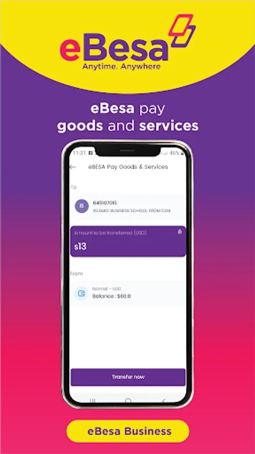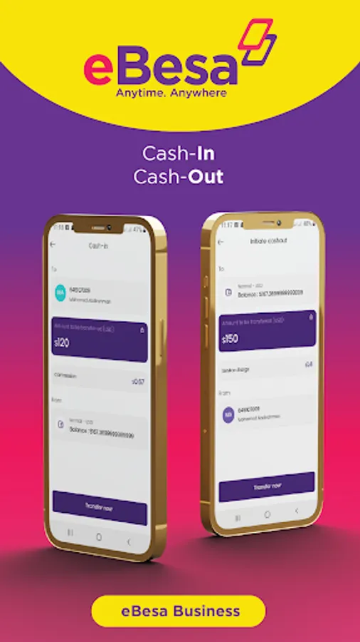 Experience convenience, simplicity and security in life with eBesa App by accessing and spending your money Anytime. Anywhere! With eBesa, you can do core Mobile Money transactions such as sending and receiving money locally and internationally, buying airtime and data paying for goods and services & bills. Additionally, eBesa App offers much more enhanced and integrated financial services among them linking and managing bank accounts, sharia compliant loans and virtual debit Cards to mention a few.