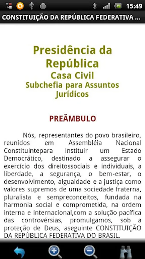 1988 Constitution optimized to study for public examinations. Touching an article or paragraph makes the text stand out. Much better and easier than studying with pen and paper. Try it.