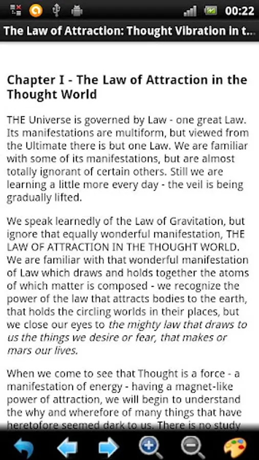 In this New Thought classic, Atkinson looks at the law of attraction in the thought world. He points out the similarities between the law of gravitation and the mental law of attraction. He explains that thought vibrations are as real as those manifesting as light, heat, magnetism and electricity. The difference is in the vibratory rate which also explains the fact that thought vibrations cannot usually be perceived by our 5 senses.