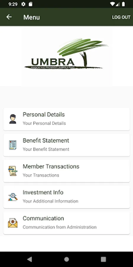 The UMBRA Mobile app allows members of funds(UMBRA Pension And Provident Umbrella fund) real-time access to their personal information, fund values and other relevant fund information and communication.