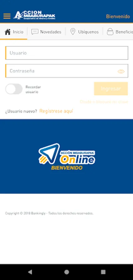 Acción Imbaburapak Online allows you to carry out your electronic transactions quickly and safely 24 hours a day. • Consultations of balances and last movements • Consultations of detail of credits and fixed-term deposits • Transfers between own accounts and to third-party accounts in Imbaburapak; and, to other financial institutions • Payments for basic services