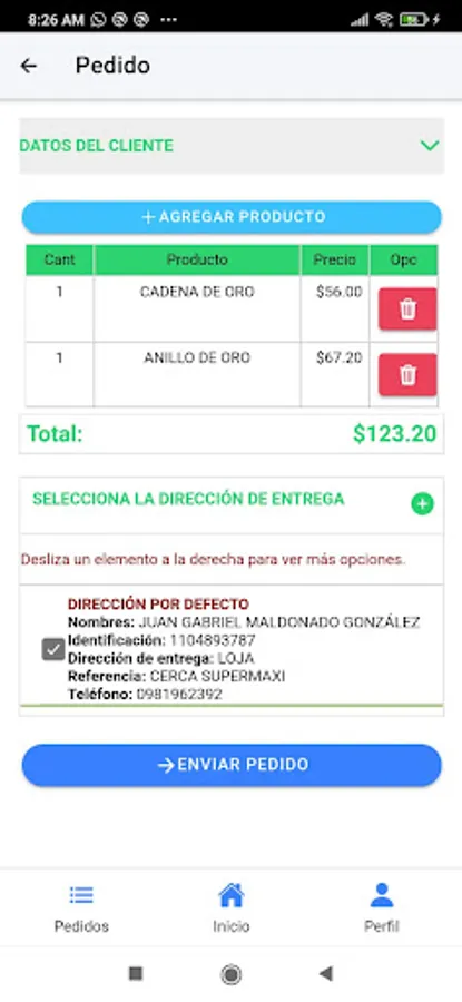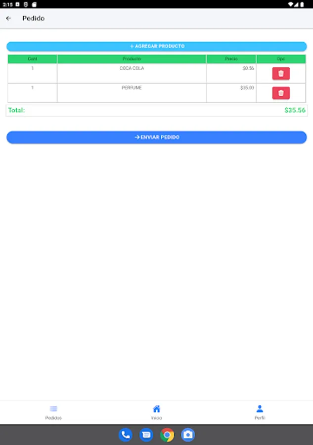 - Permite realizar pedidos de los productos que ofrece el proveedor.