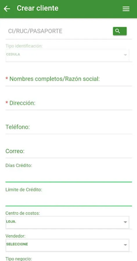 - Define payment method (Cash or Credit), payment method and credit term.