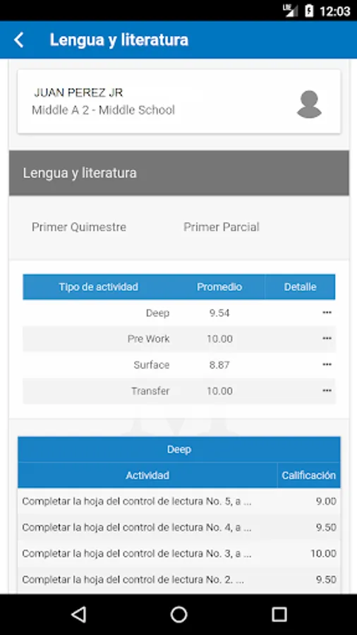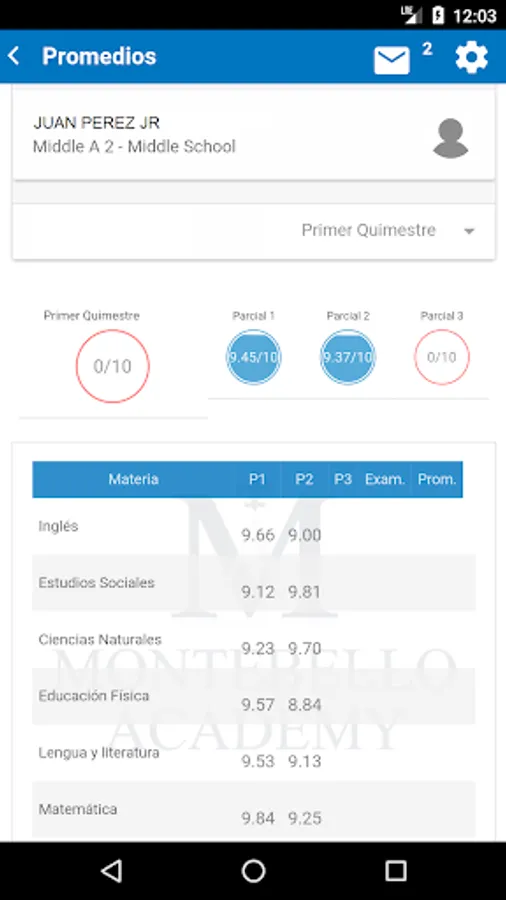 Application for displaying academic information recorded in the Academic Management System Learnbox.