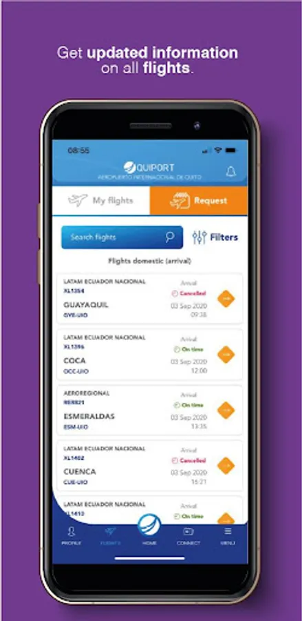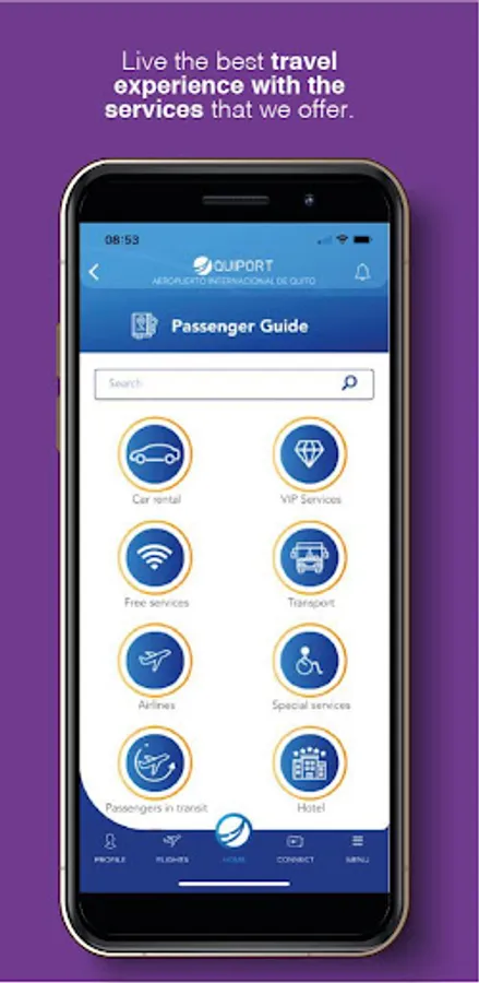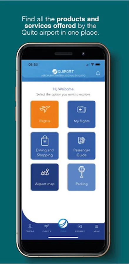 Quito International Airport’s official app is the perfect companion for your next trip to or from the middle of the world. With the app you can:
