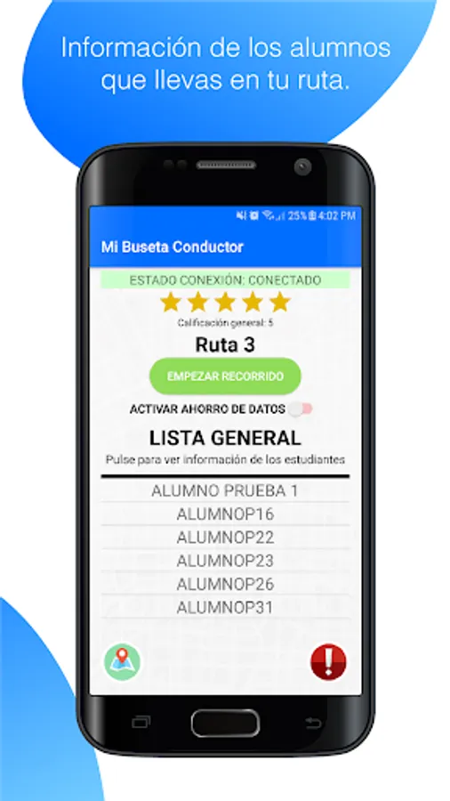 My Buseta Driver is an app that allows the driver to have an attendance of children carrying on its transport unit and also to notify parents of any new development involving your route. In addition, through this application, the driver constantly sends data related to its geo location giving parents the opportunity to see the route of their children in real time at any point along the route.