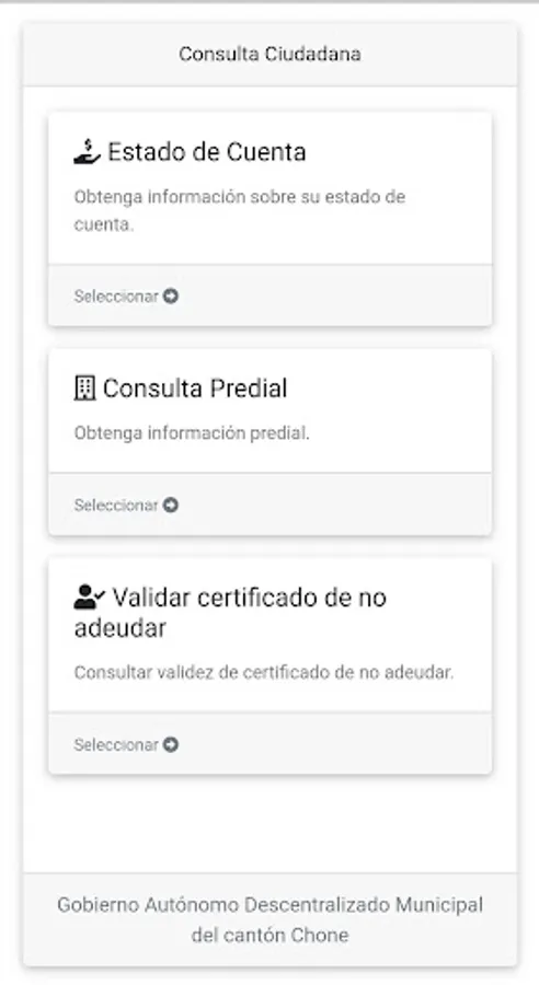 Citizen Portal of the Autonomous Decentralized Municipal Government of the Chone canton.