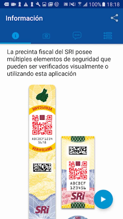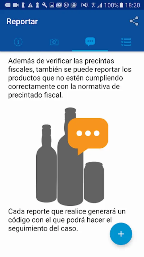 The application will indicate the characteristics of the product to check its fiscal label, if any of the features do not match you can report it. The reports will be sent anonymously.