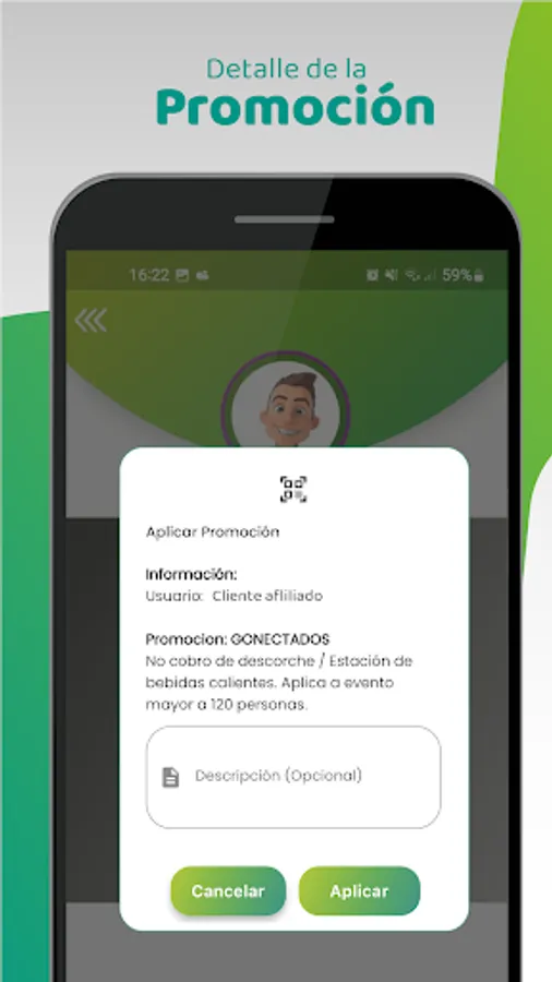 Application for GoClub establishments, the GoNet benefits club, has the following functions: update of contact details, validator of active customers to deliver benefits and history of benefits granted.