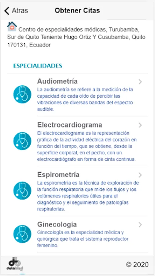 It allows you to get medical appointments from your mobile device 24/7, check availability, specialists, dispensaries closest to your location.