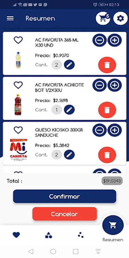 Application for home orders from the Mi Caserita Supermarket of Codelitesa Ambato Ecuador, closer and at a lower price