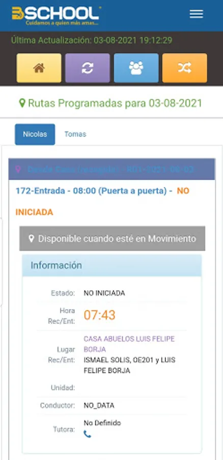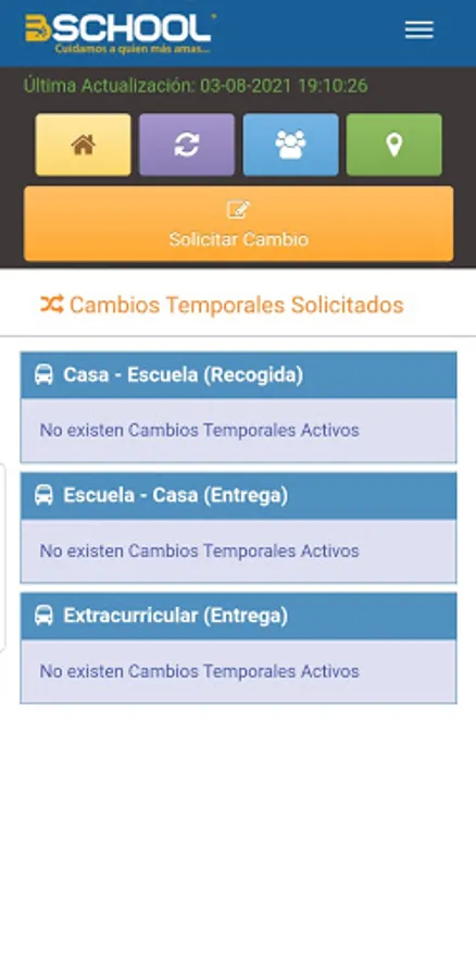 BSCHOOL - Passenger, allows the parents of students and the staff of the institutions, who travel on the school transport routes, to see the weekly planning of the routes for each passenger, request changes to the transport service and carry out the online monitoring of the movement of the route. BSCHOOL sends proximity alerts and notifies parents of the arrival of their children at the institution and at their home.